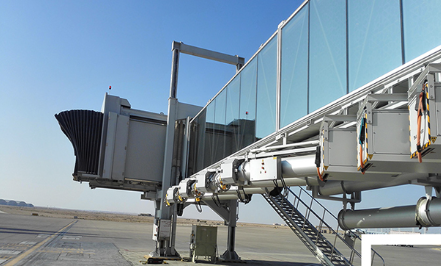 旋轉(zhuǎn)伸縮式機橋旋轉(zhuǎn)伸縮式旅客登機橋是對接飛機和機場航站樓(或固定橋)的一種帶有封閉式旅客過道的登機設備。